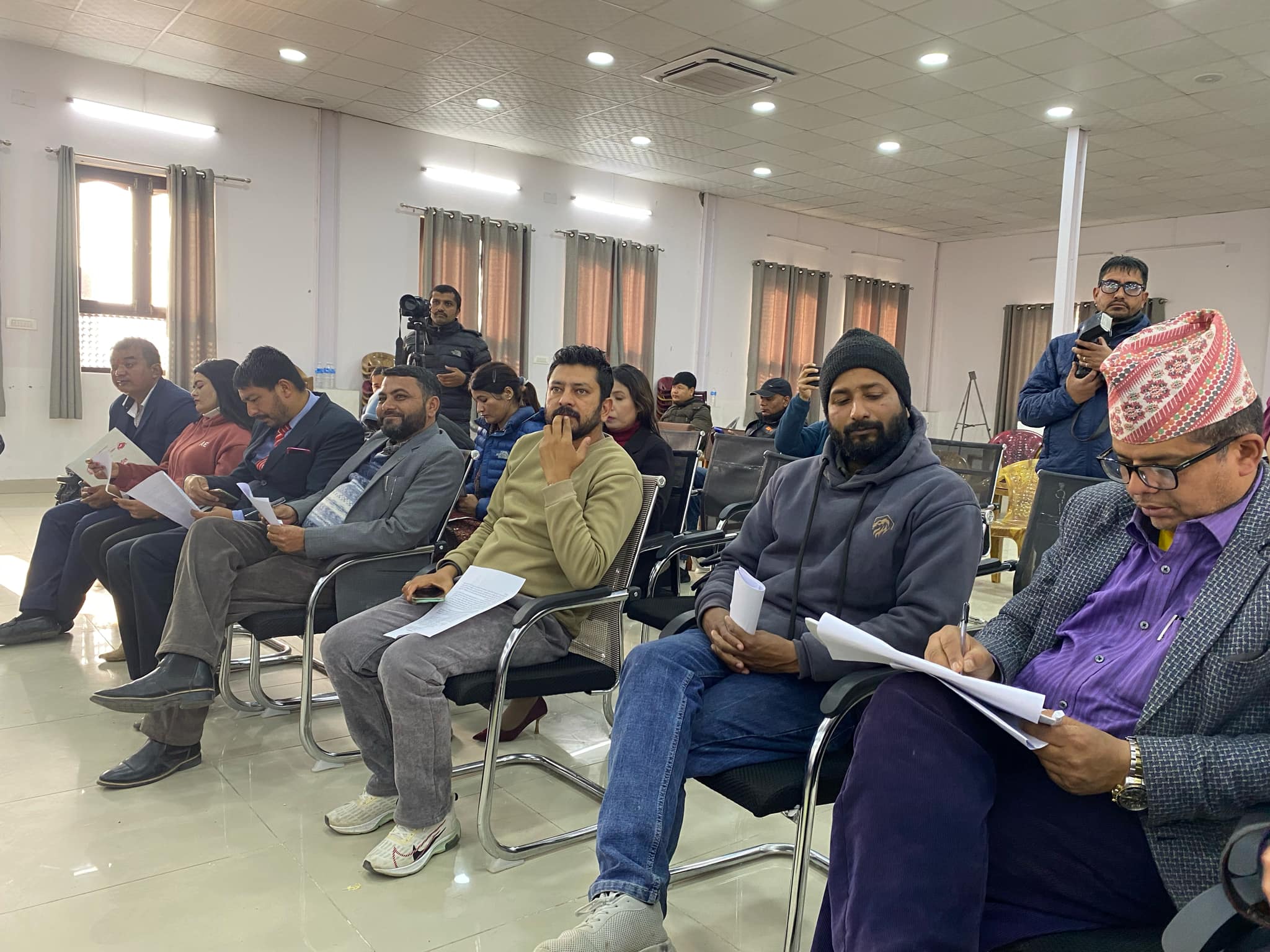 सामाजिक विकास समितिकि संयोजक शान्ता ढकालको अध्यक्षतामा भएको अओ पत्रकार भेटघाटका प्रमुख अतिथि नगर प्रमुख मिठाराम अधिकारी रहेका थिए भने उपप्रमुख अनिता लामा , प्रमुख प्रशासकीय अधिकृत तुलसीराम अर्यालको उपस्तिथि रहेको थियो। नगरपालिकाको शिक्षा , युवा तथा खेलकुद महाशाखाका प्रमुख ललित विक्रम सिंहले स्वागत सहित विस्तृत जानकारी प्रदान गरिएको कार्यक्रमको संचालक अधिकृत अनिता खनाल रहेकी थिइन।